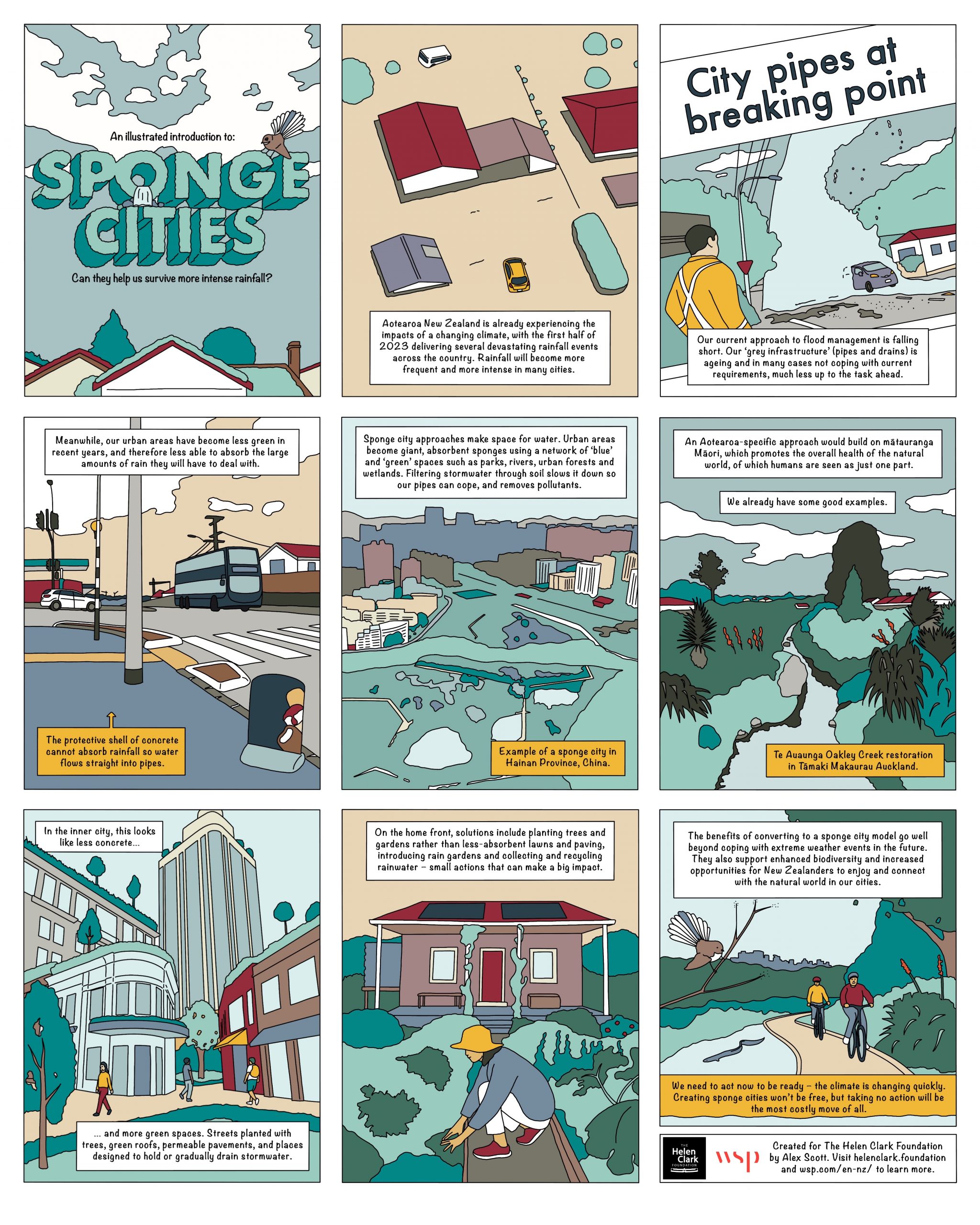 Above: Comic created for The Helen Clark Foundation by Alex Scott.