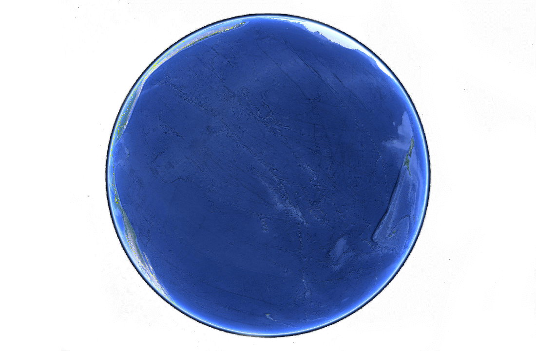 In the above image, the typical mapping perspective of Aotearoa at the bottom of the world is recentred to highlight the expansiveness of the Pacific ocean. Aotearoa is inverted from the usual framing (with Aotearoa situated to the upper right and Antartica at the top of the world) perhaps how we may also conceptualise Aotearoa, as a web of interconnections and navigational directions that cover continuity of time, place, journey and relationship, arriving at Te Ika-a-Māui (North Island) and Te Waka-a-Māui (South Island). This lens asks us to question the conventions, spatial orientations and relationships from which we become accustomed to seeing as our position in the world today (often due to particular, recurrent and predominant narratives of place).