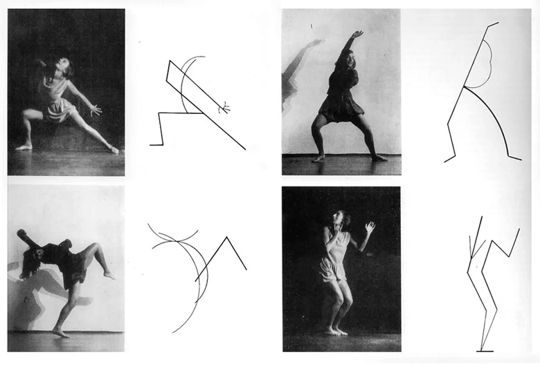 Above: Kandinsky’s line drawings, Dance Curves: On The Dances of Palucca,(1926) in which he did an extraordinary analysis of the movements, dynamism and space created by Gret Palucca dancer and choreographer and one of the main exponents of expressionist dance.