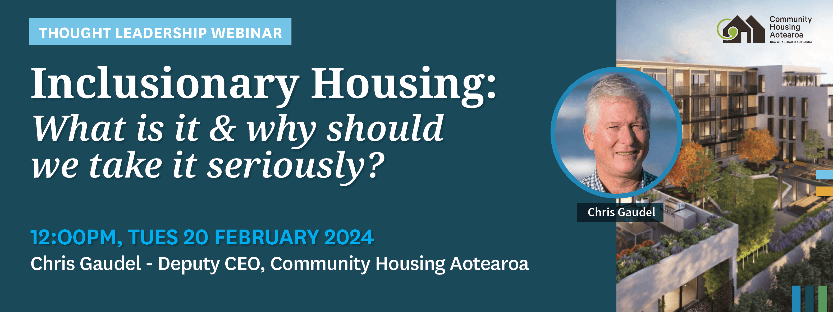 In this webinar, Chris Glaudel, Deputy CEO of Community Housing Aotearoa, will discuss the ‘what, why and how’ of Inclusionary Housing in Aotearoa, and how it offers a positive pathway forward out of our country’s housing crisis.