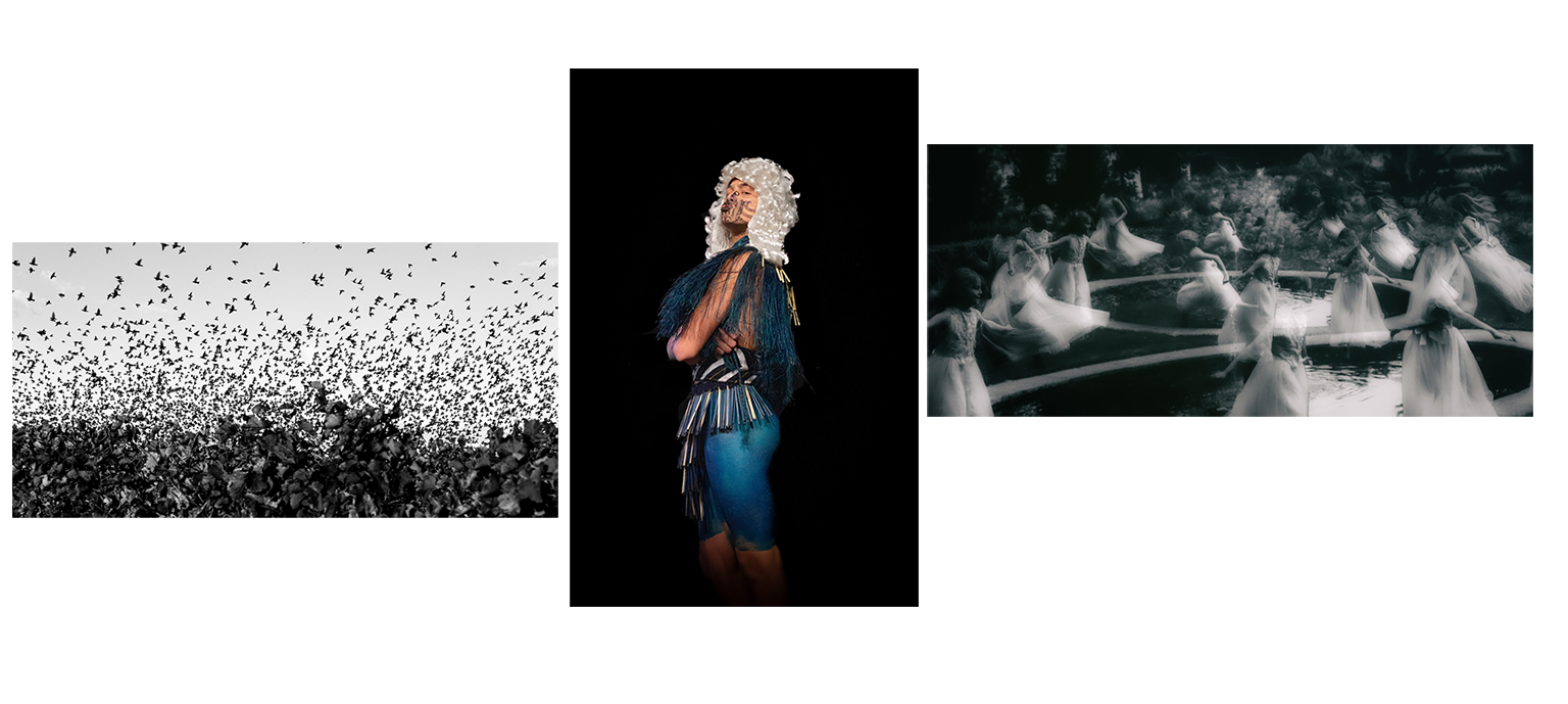 Images above: left: Rush Hour – image taken in Hawkes Bay at dusk within a vineyard, centre: When Cherubs play image taken at Greenhaugh Gardens Manawatu, little girls run around a pond, multiple exposures on top of each other, right: Mr Speaker – image taken at Te hui Ahuri o te Tapere nui o Whatonga in 2021. A day of kapa haka was absolutely thrilling!