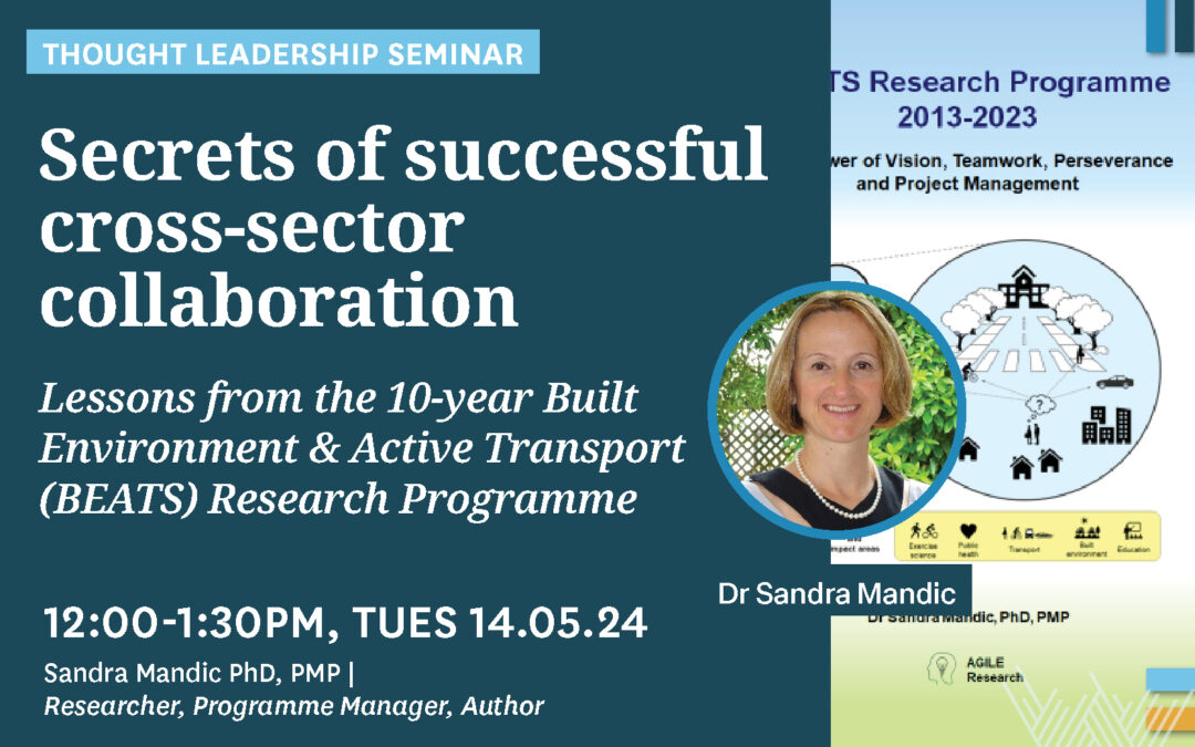 Sandra Mandic, PhD, PMP is a researcher with over twenty years of research experience in the transport and health sectors. Sandra’s personal and professional experiences span nine cities across five countries and three continents – including Europe, Canada, United States and New Zealand. She has experience of working in academia, government and business sectors. She is the founder and lead researcher on the award-winning BEATS Research Programme (2013-2023), an Adjunct Professor at Auckland University of Technology, and the Team Leader Transport Strategy at Wellington City Council. Sandra is also the founder and the director of the research consultancy AGILE Research Ltd., the creator of the Compass Guide Research Training resources and the author of three published Compass Guide books linking research and project management.